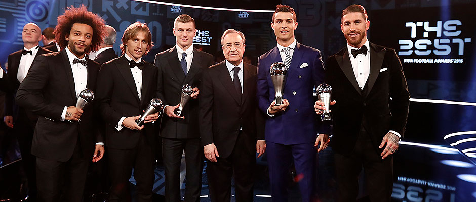 五位球员入选FIFA FIFPro年度最佳阵容的皇家马德里是入选球员人数最多的俱乐部。