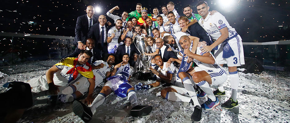 2017年6月3日,皇家马德里续写了俱乐部欧冠传奇。白衣军团在加的夫的威尔士国家球场4-1战胜尤文图斯,赢得了队史欧冠第十二冠。决赛中梅开二度的克里斯蒂亚诺·罗纳尔多当选决赛MVP。葡萄牙人为皇马首开纪录,尤文在上半场结束前由曼朱基齐扳平比分。