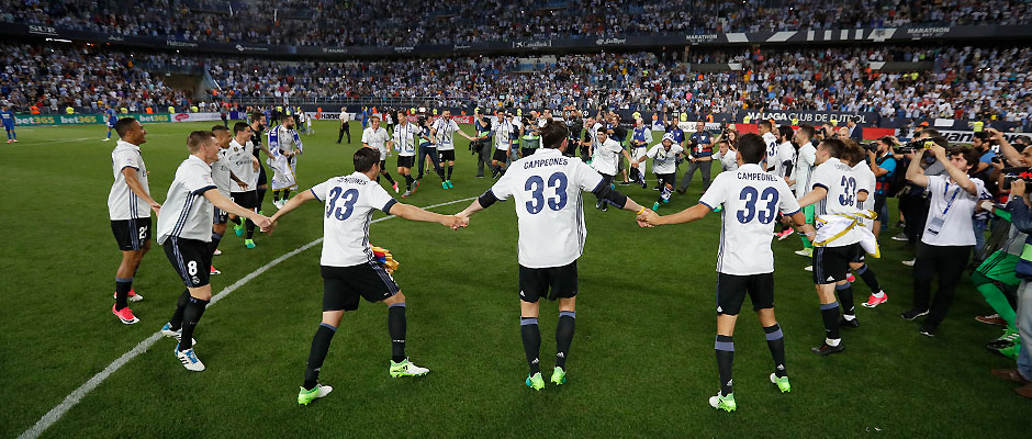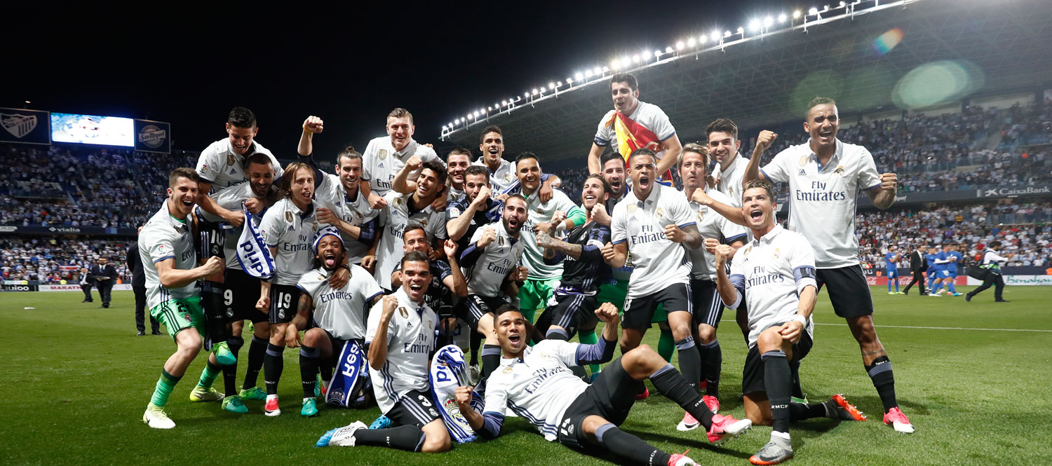 皇家马德里客场2-0击败马拉加后锁定联赛冠军。
